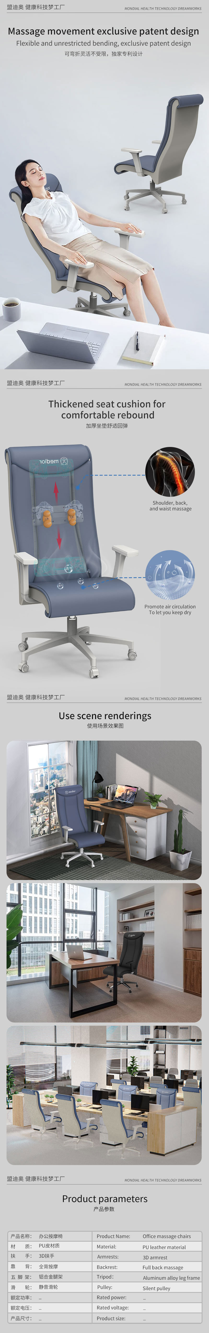 頸部揉捏按摩功能并能順時(shí)針和逆時(shí)針兩個(gè)方向旋轉(zhuǎn)頸部上下高度可調(diào),以適應(yīng)不同使用者的身高。
