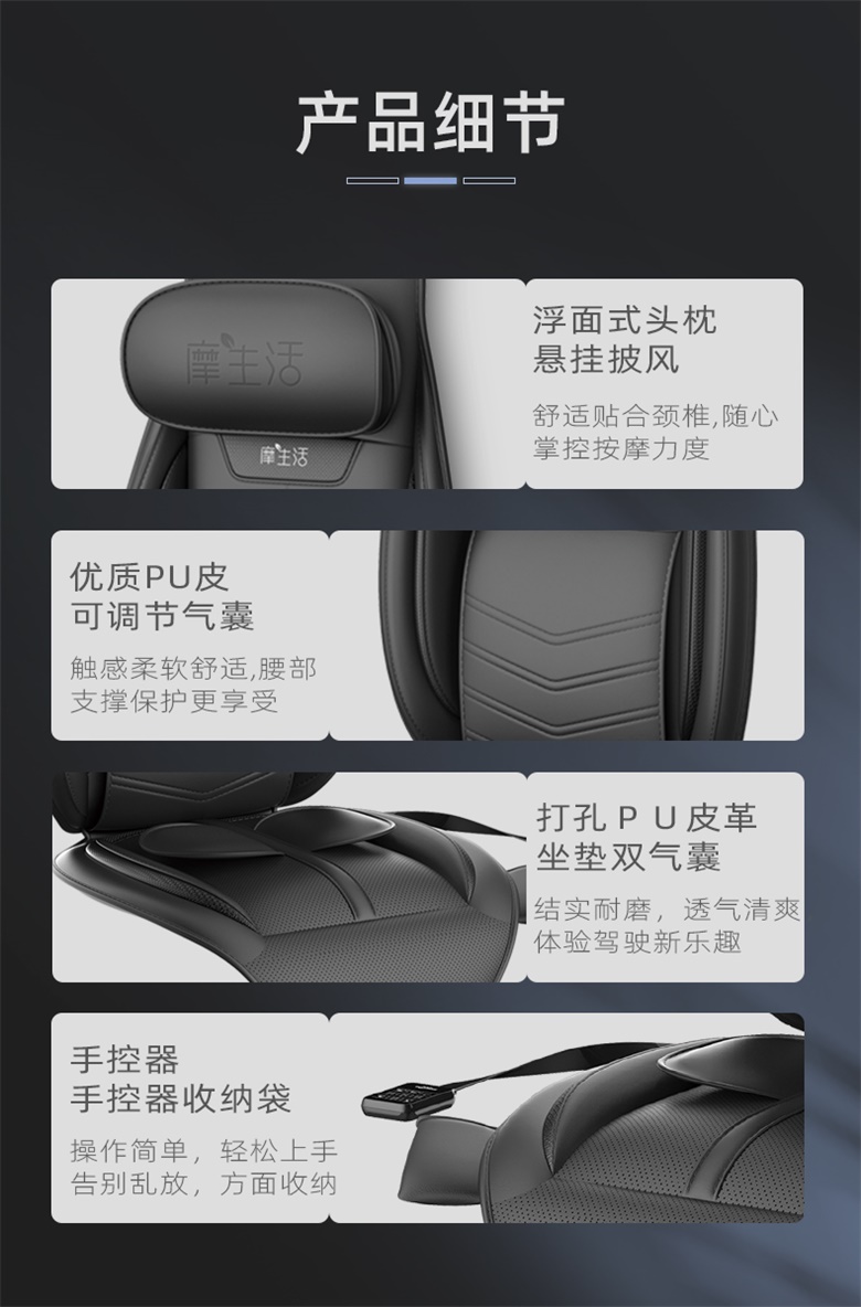 車用按摩墊材質(zhì):PU皮,材料可定制