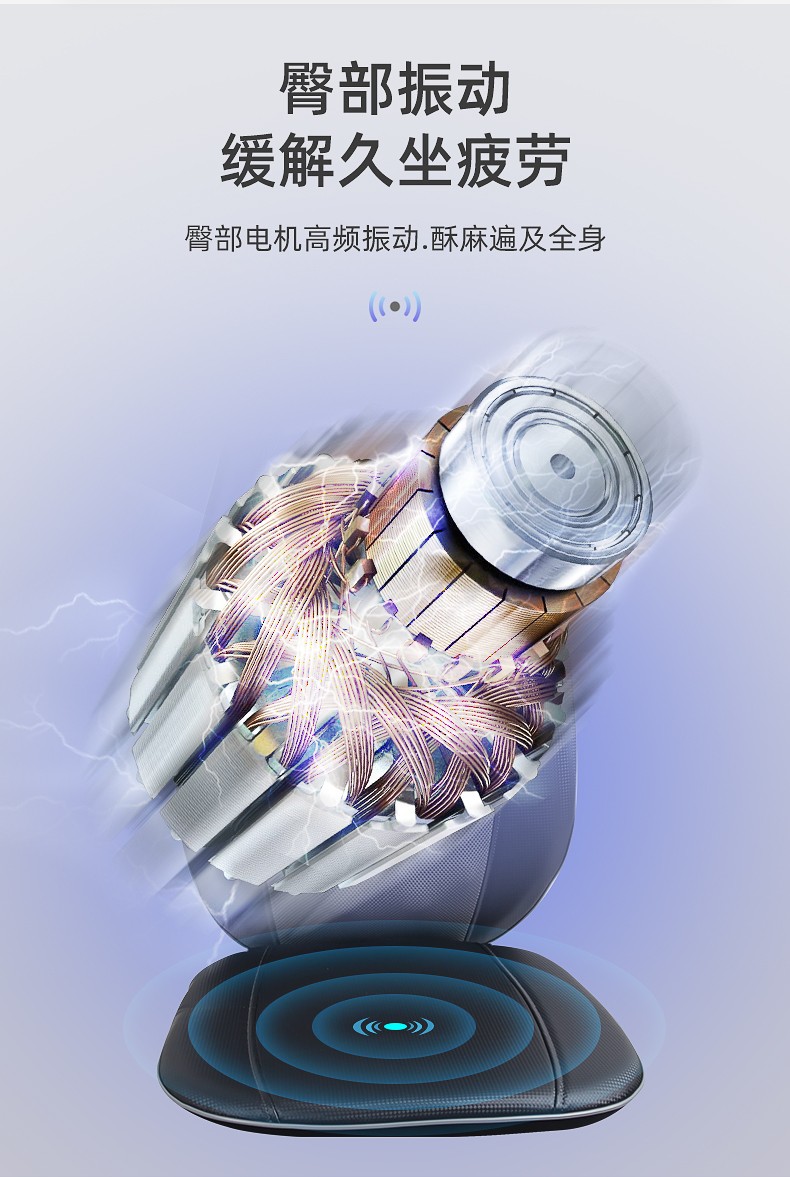 背部揉捏功能,三檔按摩力度可供選擇,背部定點按摩