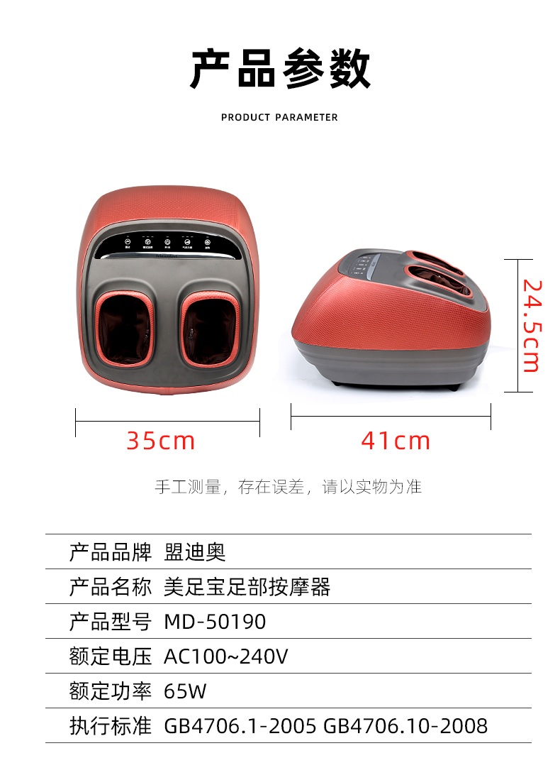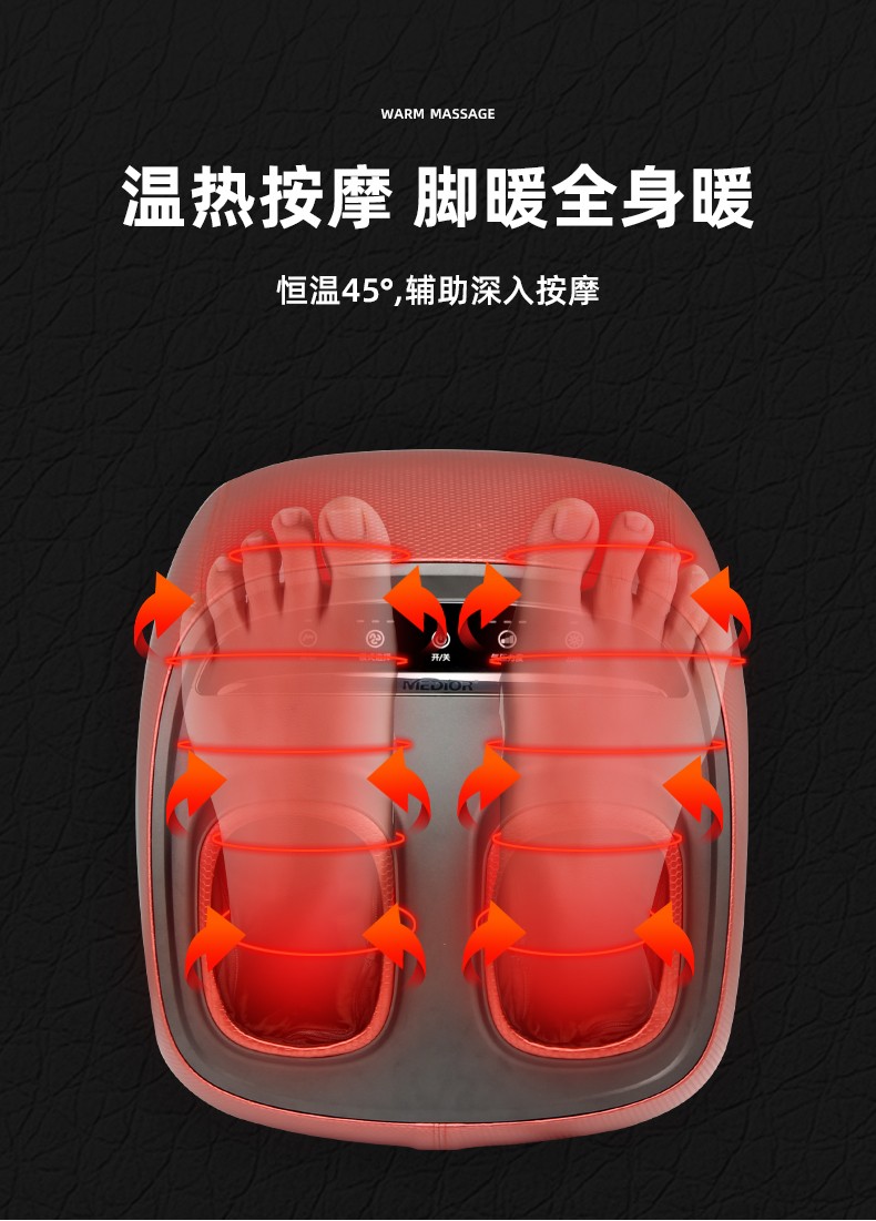 滾輪按壓(腳趾)、刮痧(腳弓)、捶打(腳后跟)按摩 (多模式,多強度);
